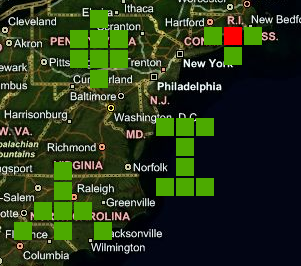 It is possible to create SmartPins which are quite different from one another, by creating various shapes and different numbers of cells, in order to create a meaningful object. The shape of the SmartPin could mimic the shape of the asset, or simply be a well-known shape meant to represent a specific set of information. Each SmartIcon cell that makes up a SmartPin is associated to a data source that provides a value; that value determines the color of the SmartIcon at any given moment in runtime. In the screen shot below, you can see when a value goes out of the normal range it turns red, indicating a problem. The warning is immediately visible even though the map displays 28 different data points.
