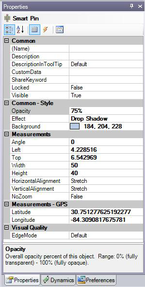 Common SmartIcon Properties section in the upper right corner of the SmartPin editor to set default and common values for your SmartIcons.