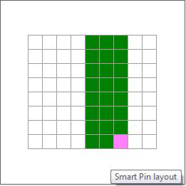 The SmartPin grid can be altered so that it has more or fewer rows and columns. This lets you create the visual configuration that you are trying to construct in the SmartPin. The SmartPin can have any number of rows and columns in the grid; you can even reduce the SmartPin to a single cell with a SmartIcon in it, if you like. Below is a grid with nine columns and eight rows. Note that the selected cell is pink.
