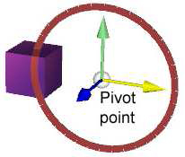 The pivot point is shown initially as a sphere in the middle of the object, as in Figure 10. Move it just as you would any primitive 3D object.
