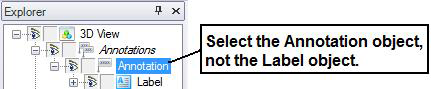 On the annotation's Properties tab, in the AssociatedObject property, type the name of the object you want the annotation to attach to. The object name is case sensitive, so make sure the name entered here is identical to the object's name as it is listed in the Explorer.