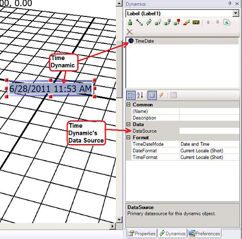 Time object shows the system clock unless you supply an alternate data source. You can use the Time dynamic’s DataSource property to assign any appropriate time/date OPC tag to display in the label as well as do time/date arithmetic. -
