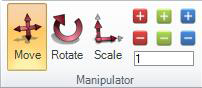 Beneath the buttons, you can enter a number representing the amount of change to be applied with each button click to move, rotate, or scale the selected object(s). The default value varies, depending on the selected manipulator.