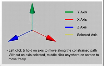 With your mouse, click a handle to choose the direction in which you want to move the selected object(s). Once a handle is activated it turns yellow. Click and drag the object to move it in the activated direction.