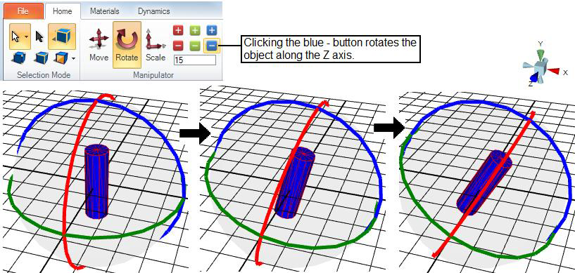 Pressing the Left and Right arrow keys rotates the object along the Zaxis.