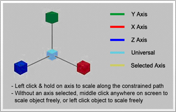Pressing the Left and Right arrow keys scales the object along the Zaxis.