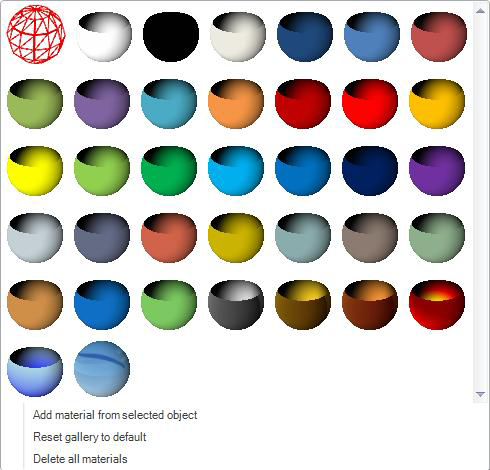 drop-down menu in the Material Gallery gives you options to add and remove materials from the gallery.