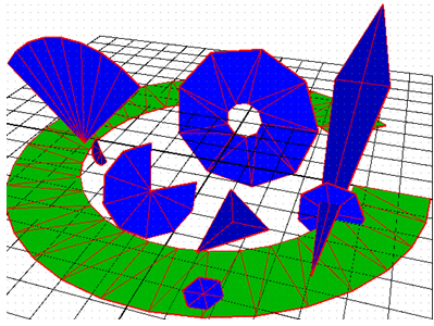 polygon primitive can take on any number of shapes. Like the plane, a polygon is a two-faced primitive that has a front and a back; you can set different colors for each side of the polygon. Default property values for polygons are set in the Preferences tab, in the New 3D Polygon Default Settings.