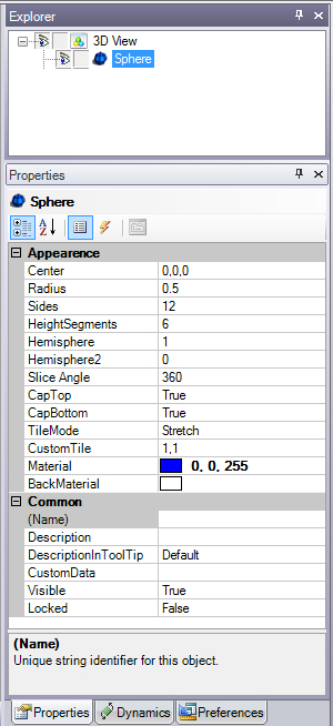 sphere to create shapes. Default property values for the sphere are set in the Preferences tab, in the New Sphere Default Settings.
