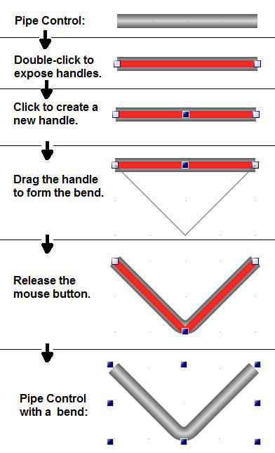 (To remove a bend or a handle: double-click the pipe section to expose its handles then right-click the handle or the bend you want to delete.) -