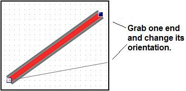 To change the pipe section's orientation: double-click the pipe to expose its handles,