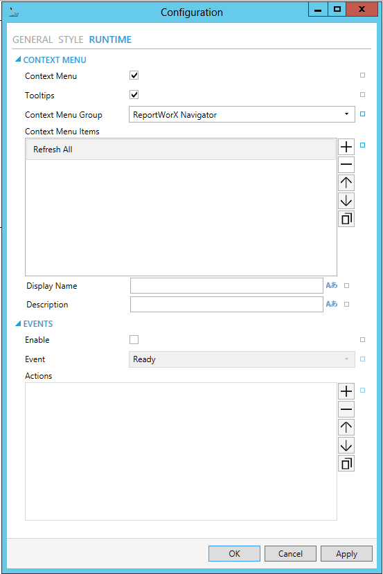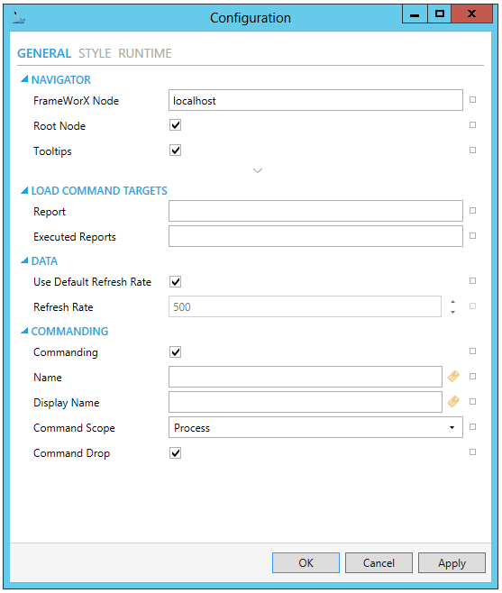 ReportWorX64 Navigator Configuration Window - GENERAL Tab