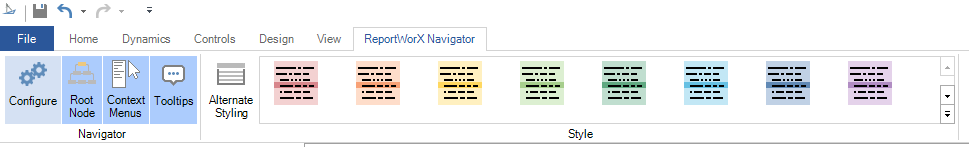 Style - This portion of the ReportWorX64 Navigator provides several possible styles for the navigator. Click on the