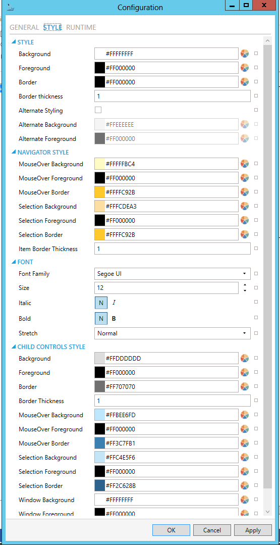 MouseOver Border - Border brush of item under mouse cursor. You can enter a color code (if known) in the text entry field or click on the