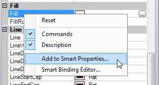 - Select the polygon. In the properties pane select “Fill” and right-click on it to bring up a menu. Select “Add to smart properties”.