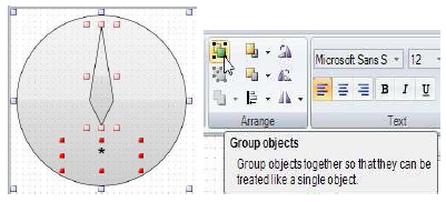 Define the start angle and end angle, either by entering the values in the dynamics pane or by dragging the shadow object of the needle to the start and end location.