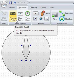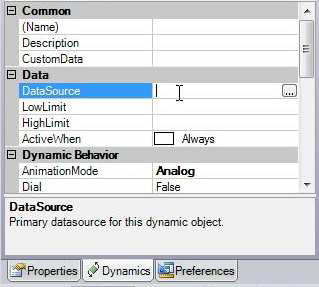 Select the same OPC tag you chose for the Process Point as Data Source from the dynamics pane. This is important, as we want the same value reflected in the rotation as well as displayed in the process point.