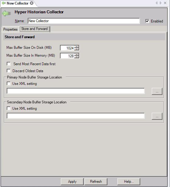 Hyper Historian Collector Form - Store and Forward Tab