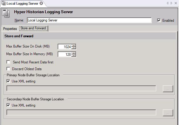 Hyper Historian Logging Server Form - Store and Forward Tab