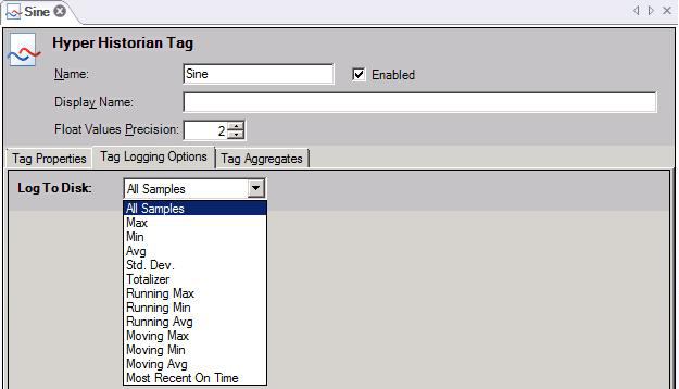 Log to Disk Options on the Hyper Historian Tag's Tag Logging Options Tab