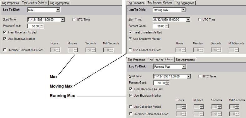 Settings for Maximum, Moving Maximum, and Running Maximum