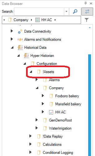 Assets Shown in a Hyper Historian Project Explorer