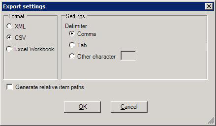 Select the Generate Relative item paths checkbox if it is important to maintain the relative paths of items in the exported file.