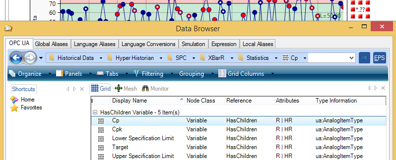 NOTE: To see desired process capability ratios in the Data Browser, you need to properly configure your SPC tag in Hyper Historian.