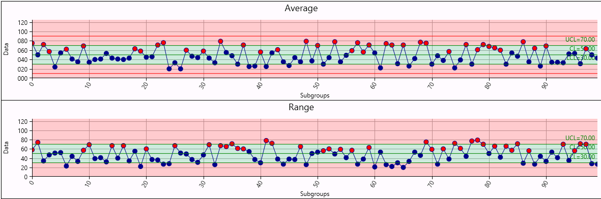 NOTE: Two charts will be created � primary showing Average and secondary showing Range (Data source path of each chart is automatically adjusted to point to proper data).
