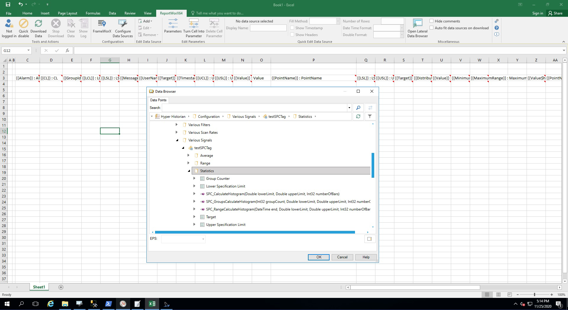 You can browse for any of the SPC data as for process points. Use the Data Browser in the same way as shown in the previous section about browsing SPC data in GridWorX64 Viewer. You can use this data in your graphics or smart tiles.