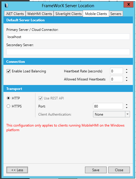 Restart all client applications for these settings to take effect. Note that this configuration only applies to clients running MobileHMI on the Windows platform.