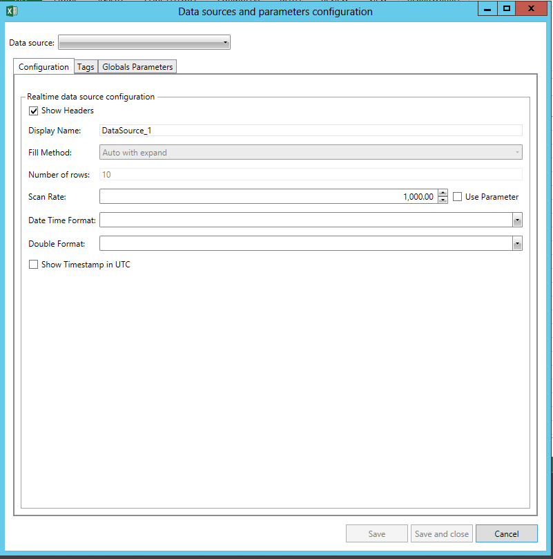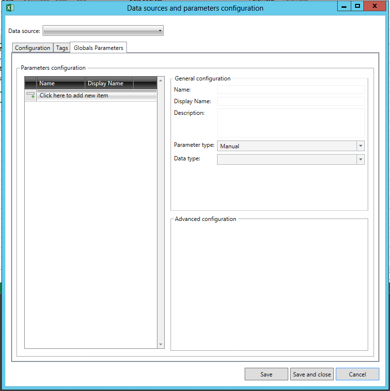 Clicking the Parameters button, shown below, in the Edit Parameters section of the ReportWorX 64 ribbon in Excel, opens the configuration window in the Parameters tab.