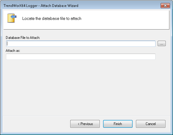 Right click the Local Server in the TrendWorX64 Logger Configurator tree explorer and select Attach Database. You can also select the Local server and click the Database, Attach Database... command in the Edit group on the Home ribbon.