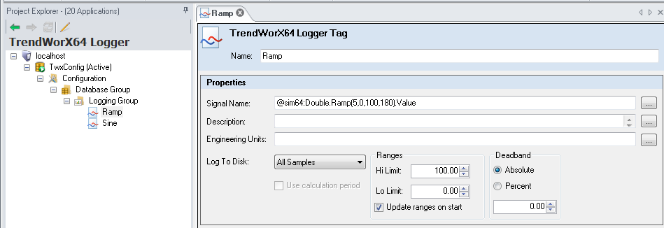 Click the Apply button in the TrendWorX64 Logger to enforce your selections. The logger begins collecting data using your settings.