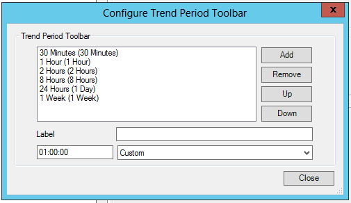In this section, you can Add or Remove Trend Periods or Sort by Order in the existing List (via the Up or Down buttons).