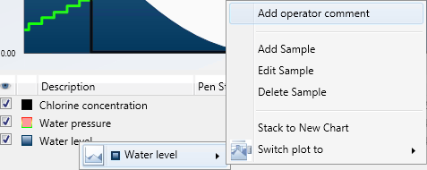 In the legend, right-click the pen to which you wish to add an operator comment.