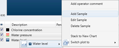In the legend, right-click the pen to which you wish to add a data sample value.