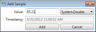 Click the Add button to create the data value for the pen at the given time.
