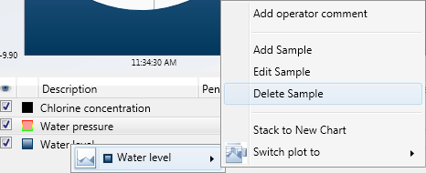 In the legend, right-click the pen from which you wish to remove an existing data sample value.