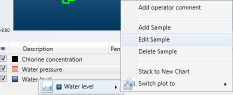 In the legend, right-click the pen in which you wish to edit an existing data sample value.