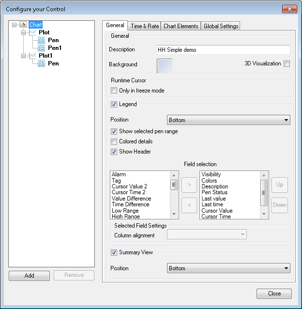In the TrendWorX64 Viewer, charts can be configured so