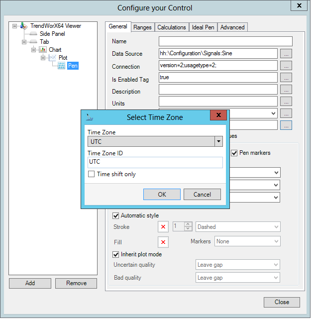 This step is key to ensuring that Time Zones are supported within your project. - Double-click your TrendWorX64 Viewer graph to bring up the Configure your Control window.