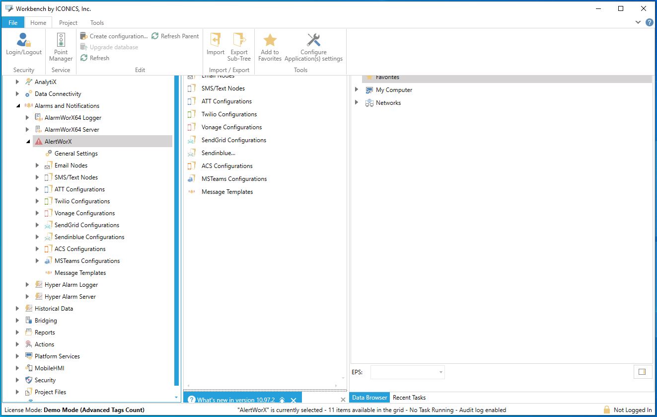 AlertWorX enhances ICONICS products by providing alert notification. It provides simple and easy to use configuration of notifications that can be sent via email and SMS/texting. It also provides reporting (via GenEvents), supports multiple data sources and integrates will all ICONICS applications.