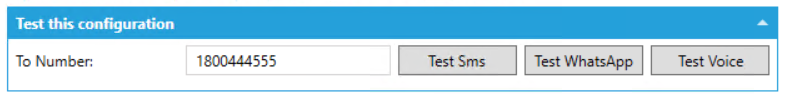 Use ‘Test Sms’, ‘Test WhatsApp’ or ‘Test Voice’ buttons to test that it is working.