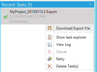 Export Task in Recent Tasks