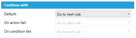 On condition fail - Use the pulldown menu to select what should occur on condition fail for the selected rule: Go to next rule; Return from sub-chain; Quit; or Execute sub-chain. See Option Definitions below.