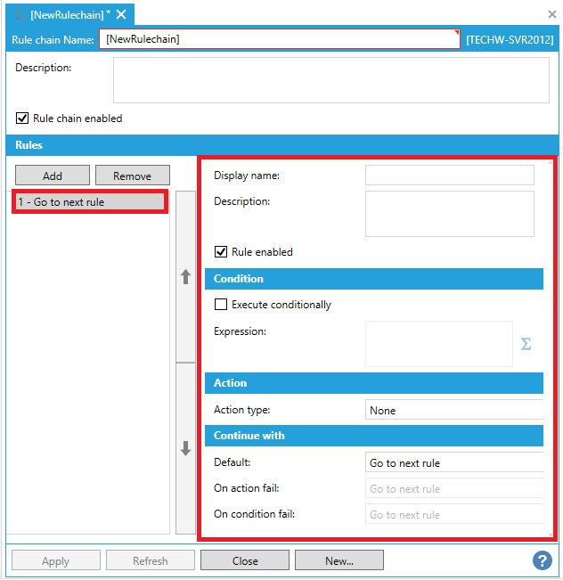 Rule chain enabled - Click this checkbox to enable the currently selected rule chain.