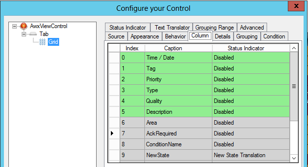 fields to be compared. We'll use the following AlarmWorX Viewer Grid,