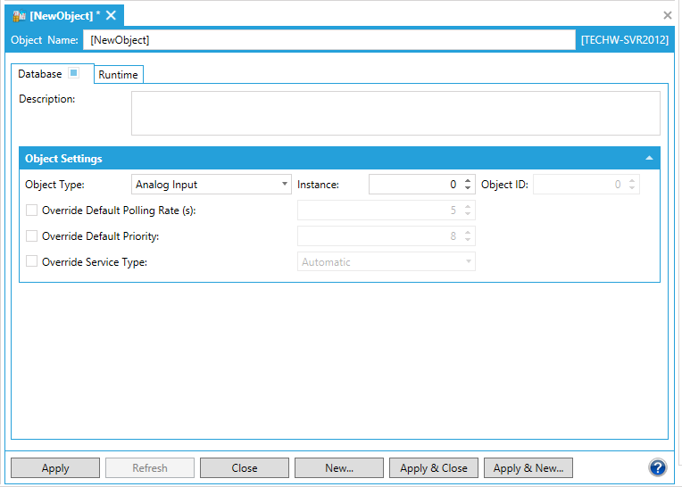Override Default Priority – Sets a number between 1 and 16 as to the criticality of an object, in comparison with others. Assigning a priority level marks the importance of messages and which will override others. Some numbers are pre-assigned (1, 2, 5, 6, 8), with life safety naturally having highest priority. Other numbers (3, 4, 7 and 9 through 16) are not assigned and therefore are available for users to set their own priorities. Default is 8.