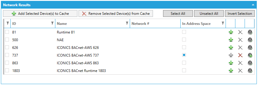 Each item will list its ID, Name, Network # and whether or not it is included in the Address Space (by checkmark).